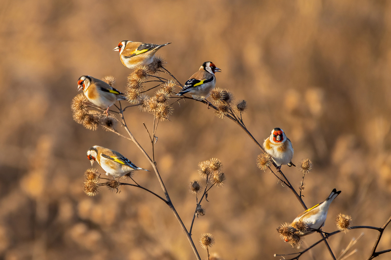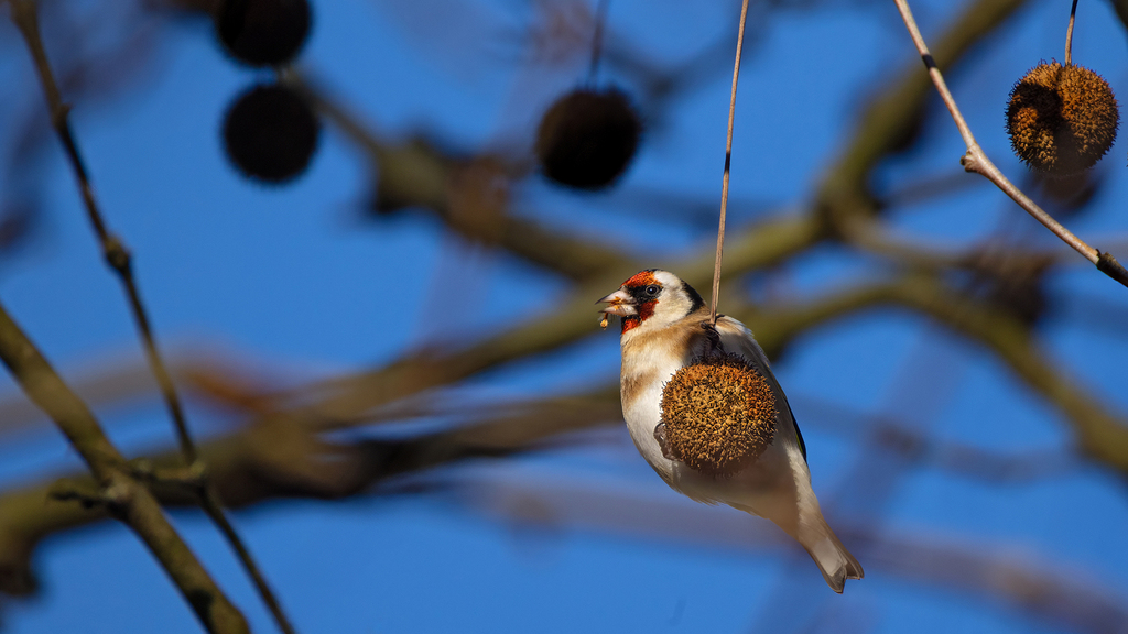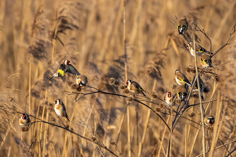 Der Distelfink, auch Stieglitz genannt, ist ein farbenprächtiger Fink mit rotem Gesicht, schwarz-weißem Kopf und gelben Flügelbinden. Sein Brutgebiet erstreckt sich über große Teile Europas, von Westeuropa bis nach Osteuropa, mit Schwerpunkten in offenen Kulturlandschaften. In Deutschland ist er ein weit verbreiteter Brutvogel und kommt regelmäßig auch in Rheinland-Pfalz und Baden-Württemberg vor. Typisch ist sein Verhalten, oft in kleinen Trupps umherzuziehen und geschickt an Pflanzen zu klettern, um Samen zu erreichen. Seine Nahrung besteht vor allem aus Samen von Disteln und anderen Korbblütlern, ergänzt durch kleine Insekten. Der Distelfink ist überwiegend Standvogel oder Kurzstreckenzieher, wobei einige Populationen im Winter nach Süden ausweichen. Als Lebensraum bevorzugt er offene Landschaften, Gärten, Streuobstwiesen und brachliegende Flächen mit reichlich Samenpflanzen.
