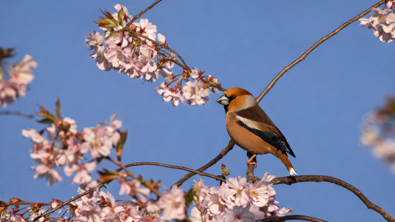 Unser größter heimischer Fink, der Kernbeißer kommt leider bei uns in der Gegend nicht sehr häufig vor. Einmal erwischte ich einen im Schwetzinger Schlossgarten während der Kirschblüte.