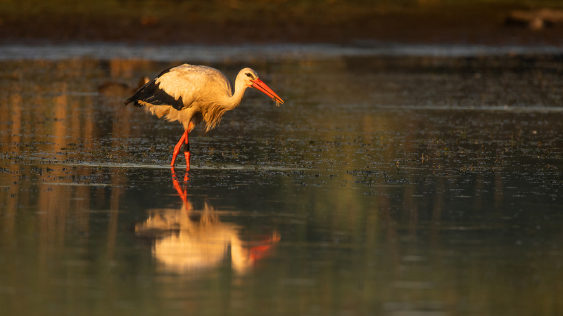 Typisch ist seine ruhige Jagdweise: Er bleibt häufig regungslos stehen und stößt dann blitzschnell mit dem Schnabel zu.