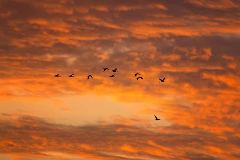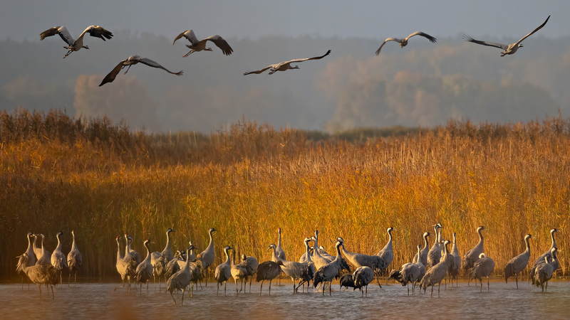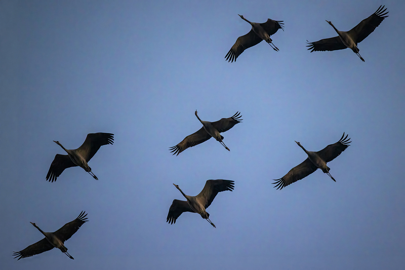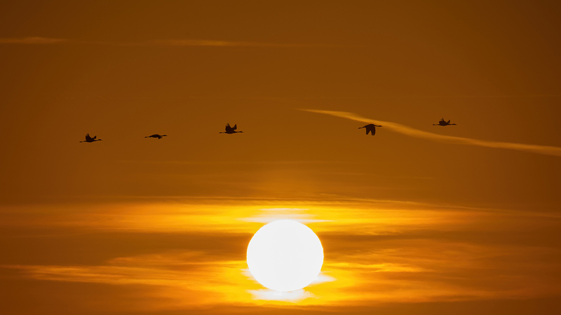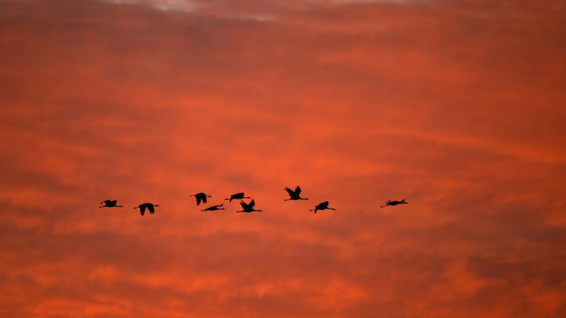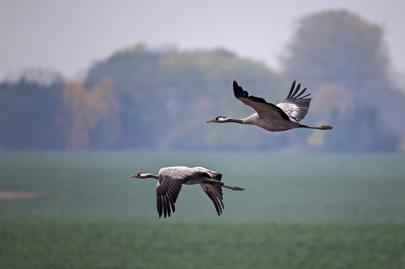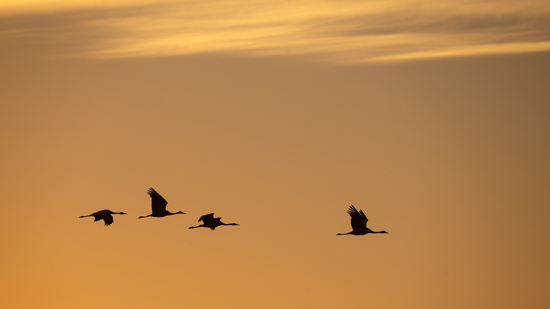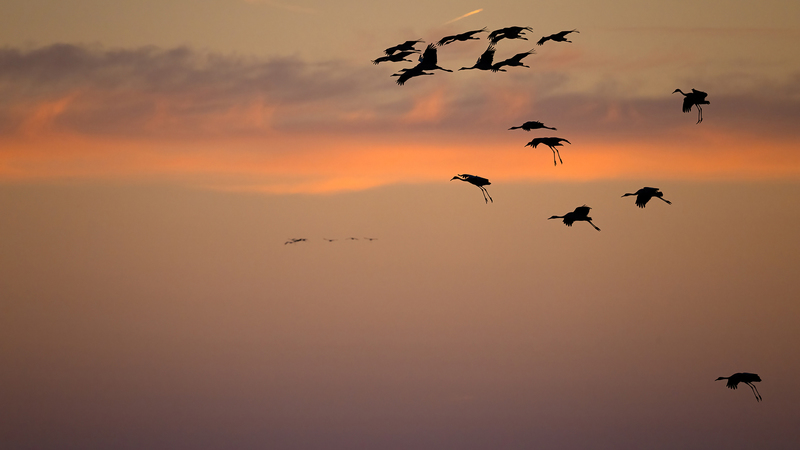 Als Zugvögel überwintern viele europäische Kraniche in Spanien oder Südfrankreich und kehren im Frühjahr in ihre nördlichen Brutgebiete zurück.