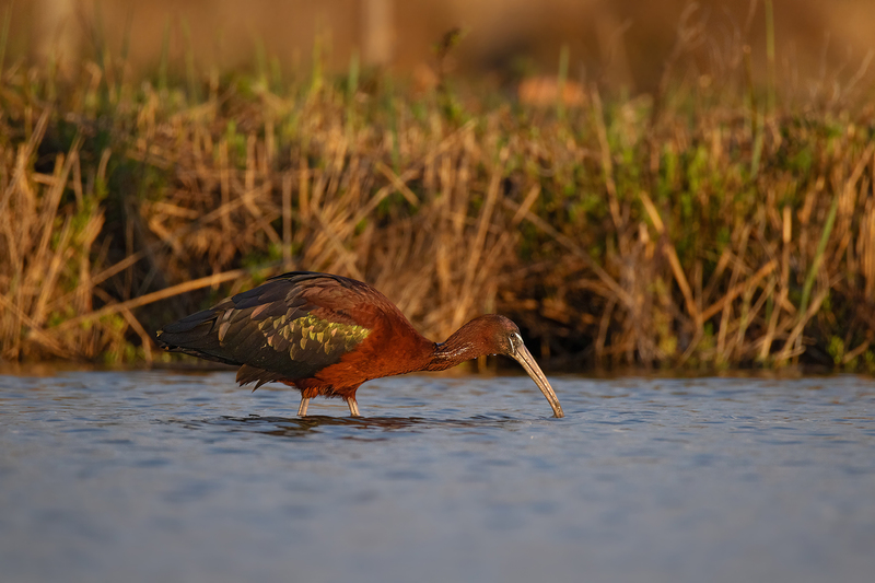 Typisch ist seine aktive Jagdweise: Er läuft durch das flache Wasser, bewegt die Füße oder breitet kurz die Flügel aus, um Beute aufzuscheuchen.