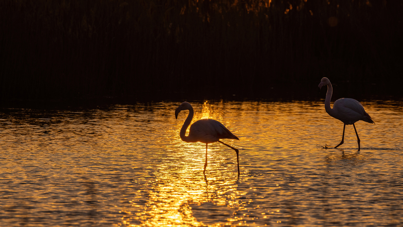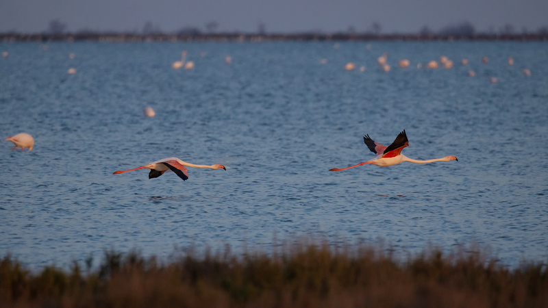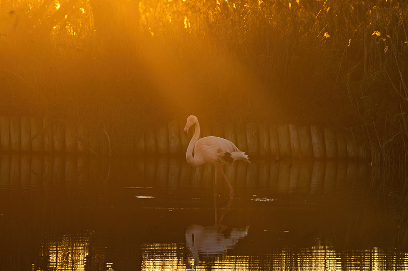 Die Flamingos waren während der Reise allgegenwärtig, weshalb ich ihnen gleich eine ganze Galerie gewidmet habe. Besonders im ornithologischen Park „Pont de Gau” hat man beste Gelegenheiten, sie in jeder Lebenslage zu fotografieren. Dieser Park entstand aus der Liebe zur Natur eines Einheimischen vor drei Generationen. Er gestaltete einen Teil des heutigen Gesamtgebietes so, dass sich Wasservögel aller Art, insbesondere natürlich Flamingos, sehr wohlfühlten. Das ist bis heute der größte Besuchermagnet. Nach anfänglichen Erfolgen kaufte die Familie immer mehr Land, um noch mehr Vögeln einen möglichst natürlichen Lebensraum zu bieten. Es wurden jedoch auch einige Uferzonen mit Holzpfählen befestigt, Bänke aufgestellt und ein kleines Café eingerichtet. Für Vogelbegeisterte wurden außerdem einige Beobachtungshütten eingerichtet, von denen aus sich die Wasservögel sehr gut beobachten lassen, ohne sie zu stören. Alle Vögel sind absolut frei. So kann es vorkommen, dass abends die meisten Flamingos ausgeflogen sind.